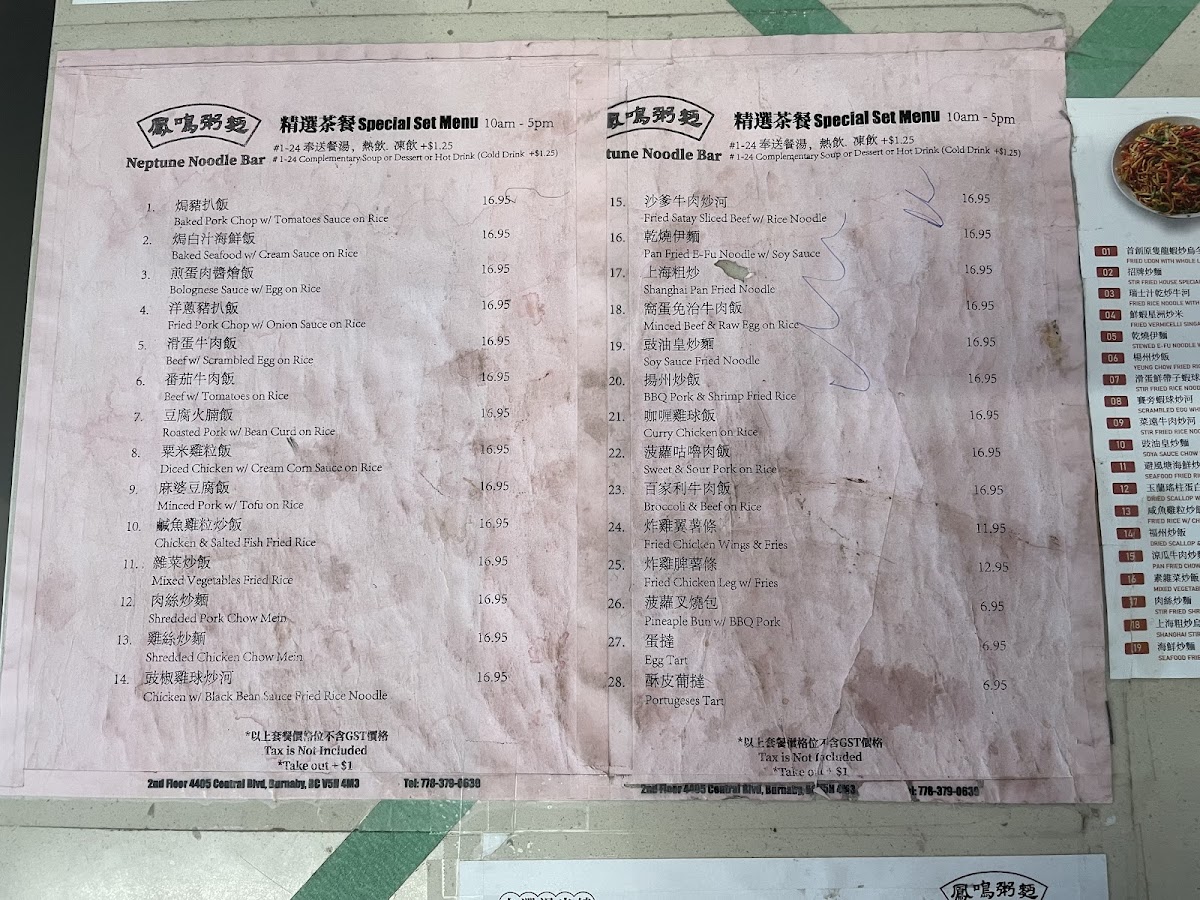 Neptune Noodle Bar (Burnaby) Menu
